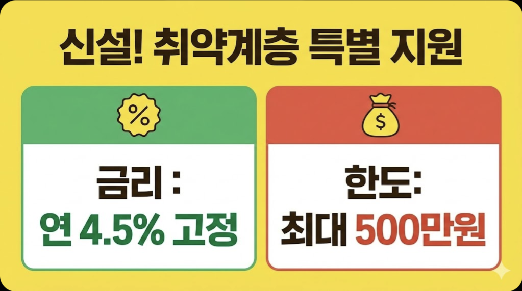 - 지원 대상: 연소득 3,500만 원 이하이면서 신용평점 하위 20% 이하인 자