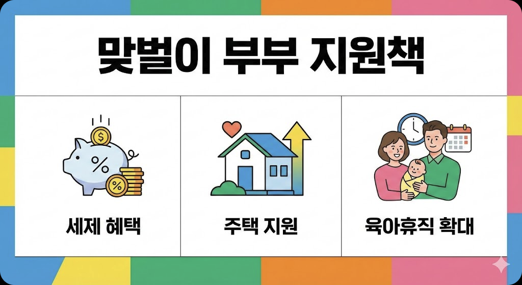 사랑하는 사람과 함께 새로운 가정을 꾸리고, 둘만의 꿈을 펼쳐나가고 싶지만 ‘일자리 안정’과 ‘육아’라는 현실적인 장벽 앞에서 망설이는 신혼부부들이 많으실 텐데요. 하지만 2026년, 정부의 든든한 지원책과 함께라면 이러한 고민은 더 이상 현재 진행형이 아닐 겁니다. 오늘은 2024년부터 2026년까지 확대 및 신설된 신혼부부 맞춤형 정책들을 꼼꼼하게 파헤쳐, 여러분의 안정적인 맞벌이와 행복한 육아 병행을 위한 성공 비법을 알려드리겠습니다!