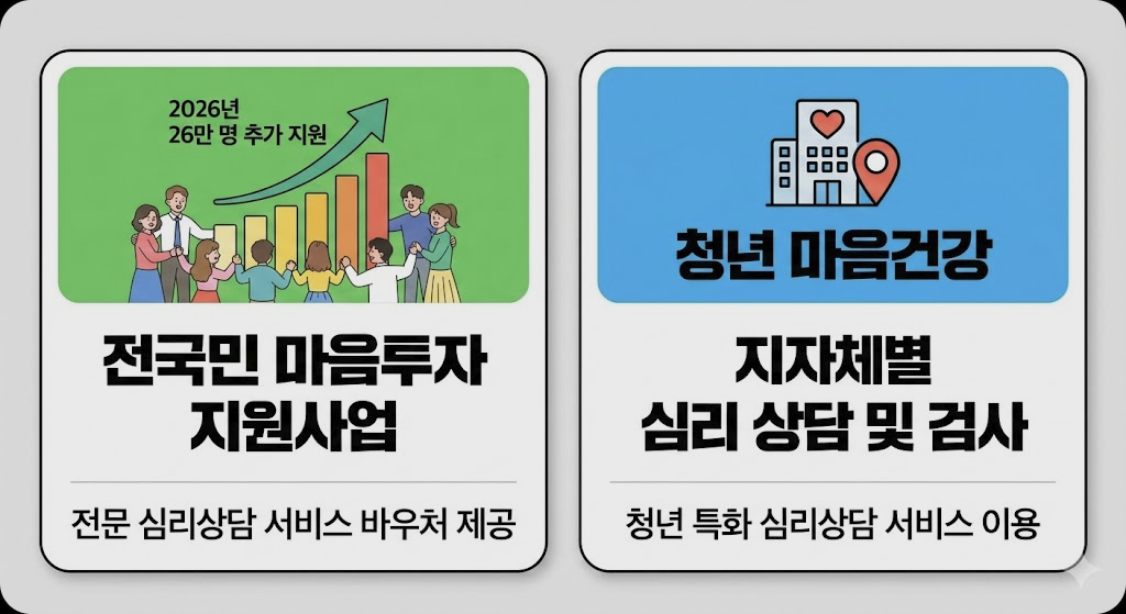 심리 상담이나 정신건강의학과 진료는 비용 부담 때문에 망설이는 경우가 많습니다. 하지만 2026년부터는 이러한 경제적 장벽이 크게 낮아집니다.