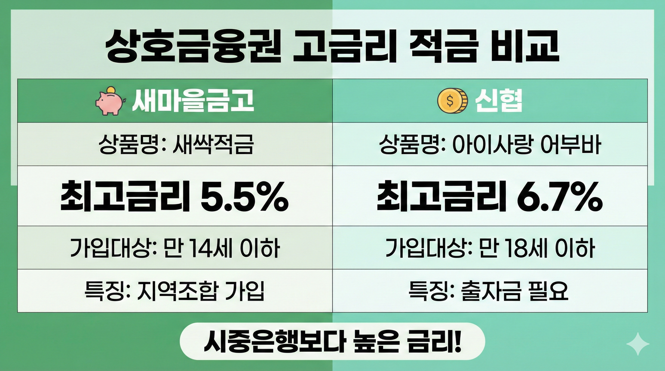 - 어린이 적금 금리: 최고 연 6.7%까지 (신협 기준)