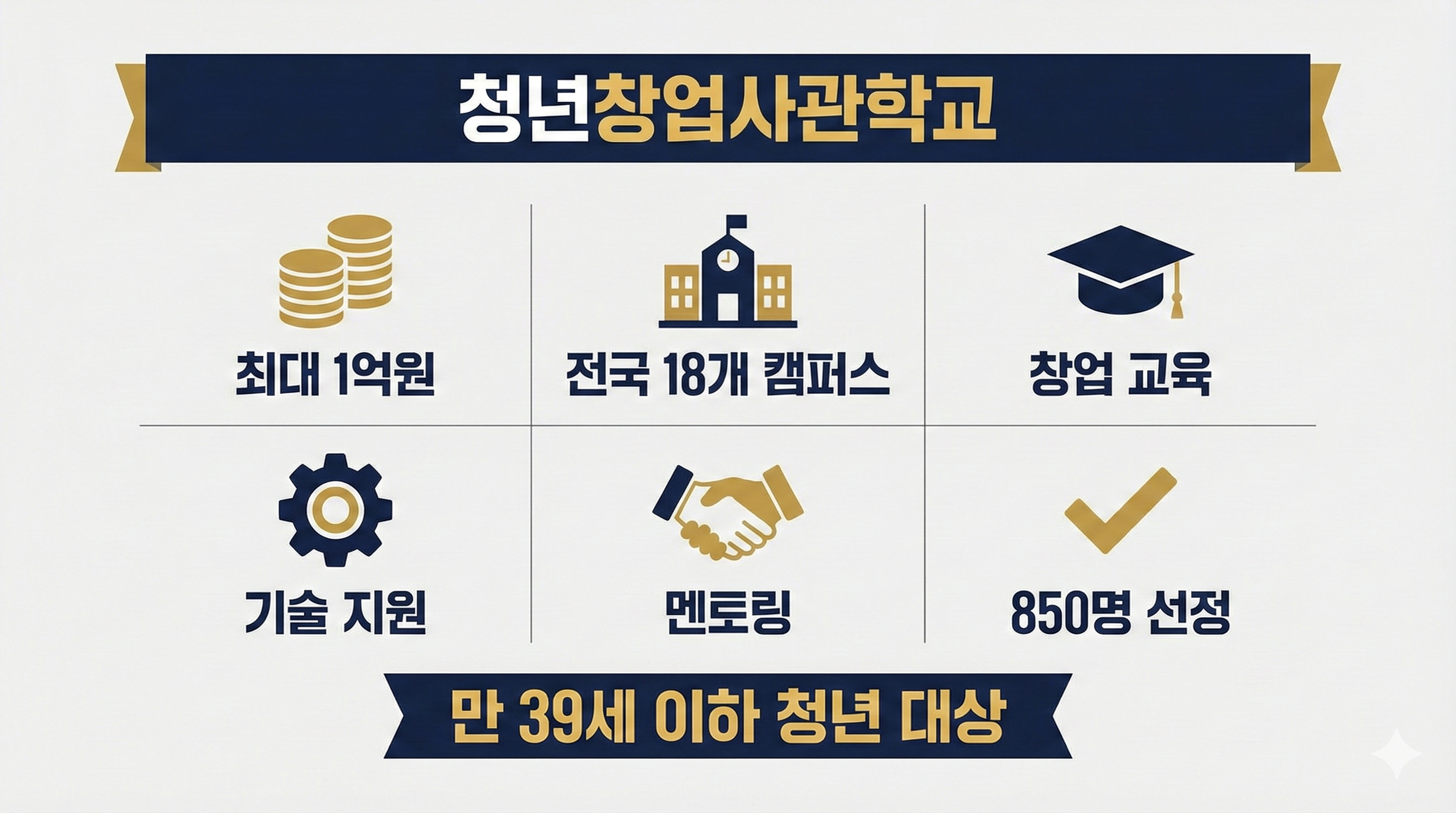 - 청년창업사관학교: 만 39세 이하, 최대 1억원 + 창업공간
