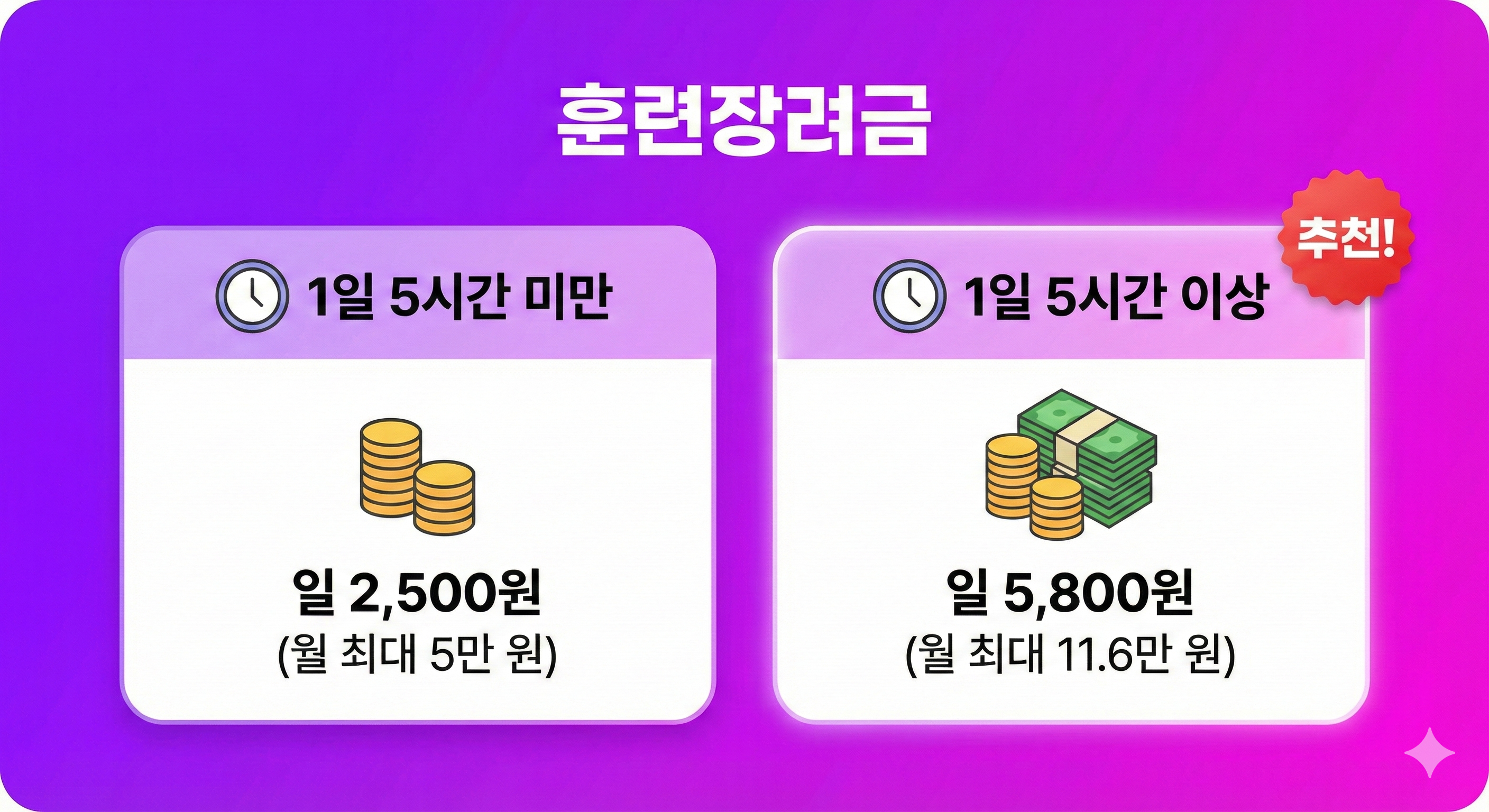 - 1일 5시간 이상: 일 5,800원 (월 최대 11.6만 원)