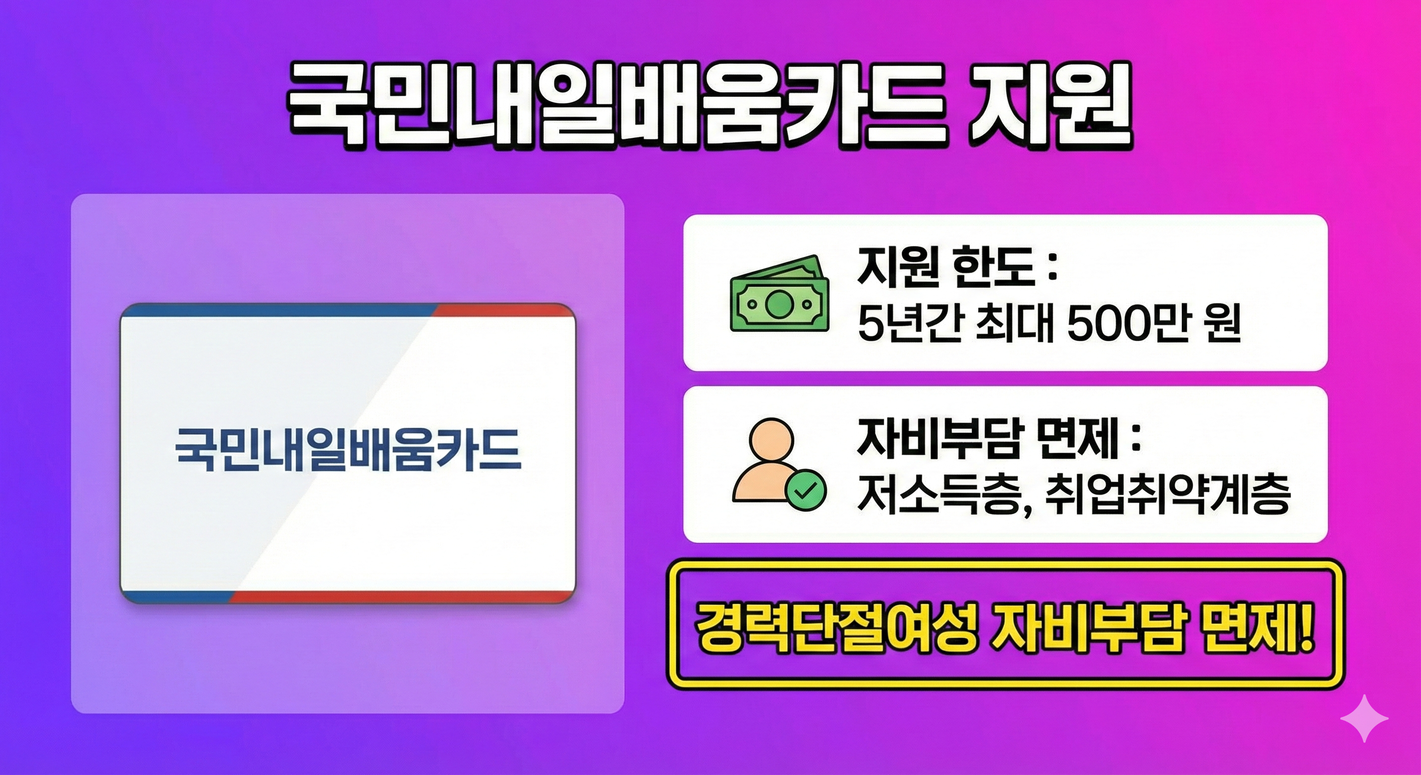 - 내일배움카드: 5년간 최대 500만 원 지원