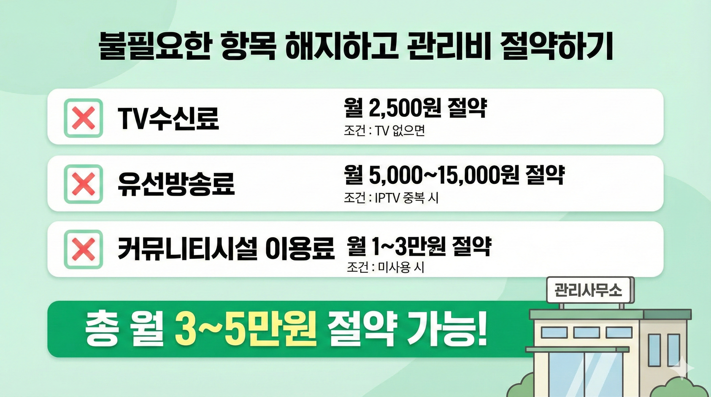 | 불필요 항목 해지 | TV수신료, 유선방송, 커뮤니티 | 월 3~5만 원 |