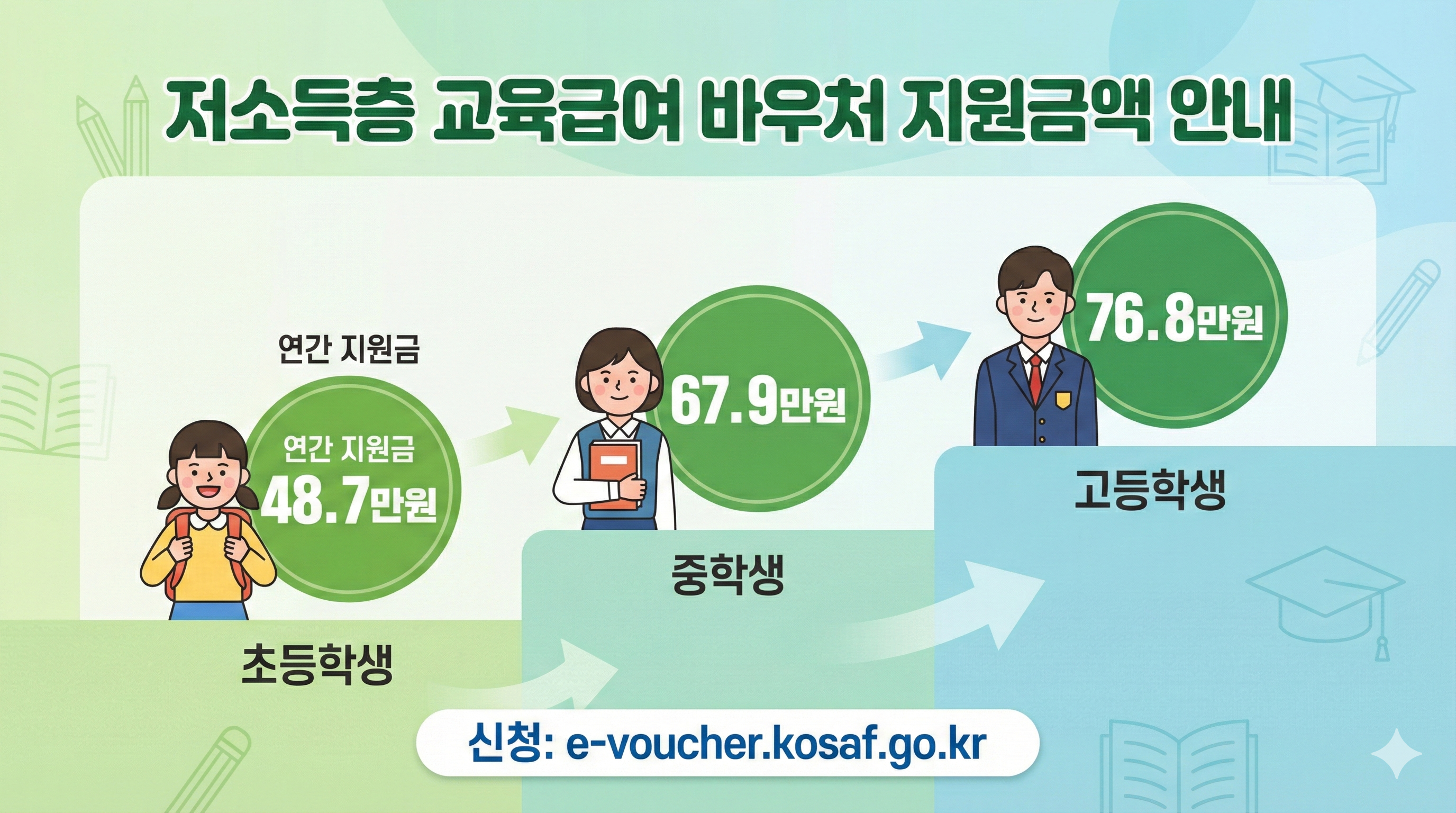 | 교육급여 바우처 | 저소득층 | 연 48~76만원 지원 |