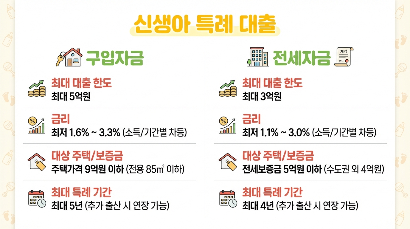 - 신생아 특례 대출 (구입자금 및 전세자금)