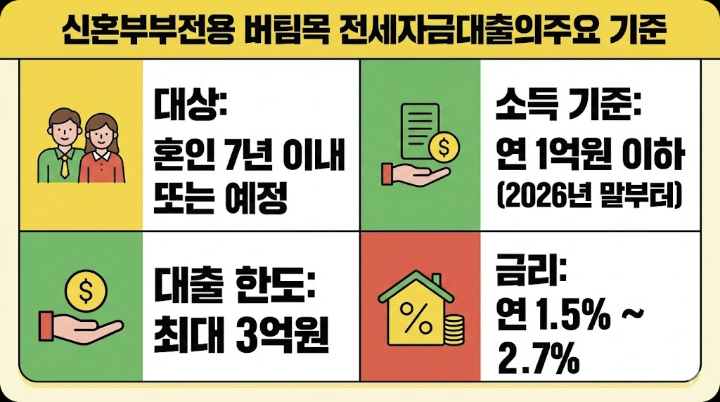 신혼부부전용 버팀목 전세자금대출 주요 조건 (2026년 기준)